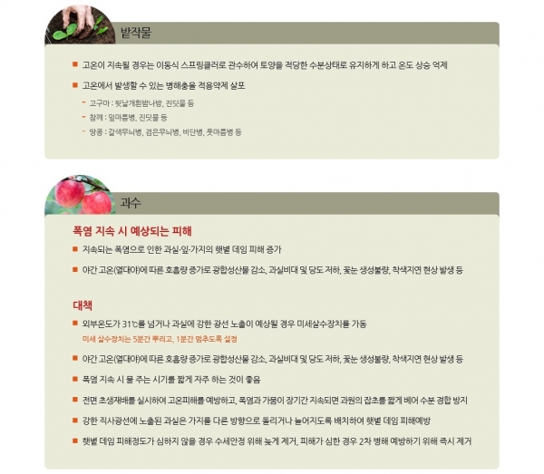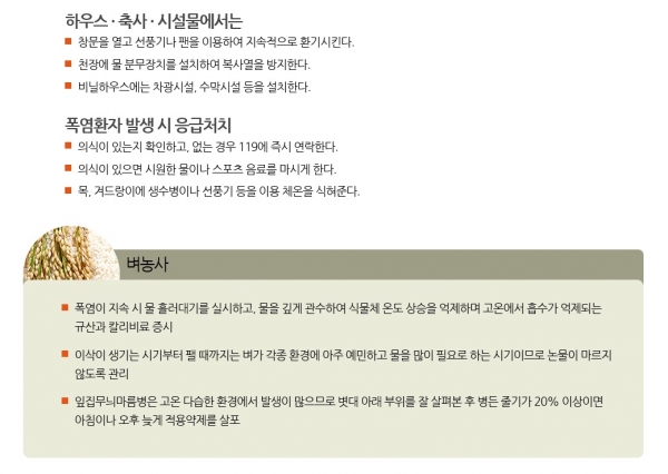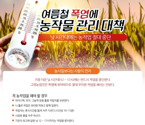 여름철 폭염에 농작물 관리 대책 낮 시간대에는 농작업 절대 중단