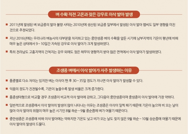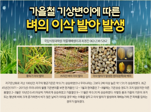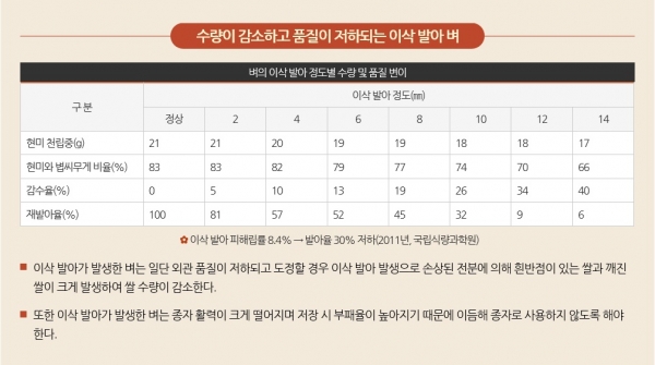 가을철 기상변이에 따른 벼의 이삭 발아 발생
