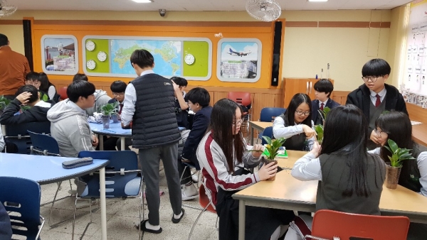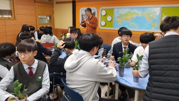 10월 29일에 부천중학교를 다시 방문하여 숨쉬는팟 체험교육을 진행하였습니다!