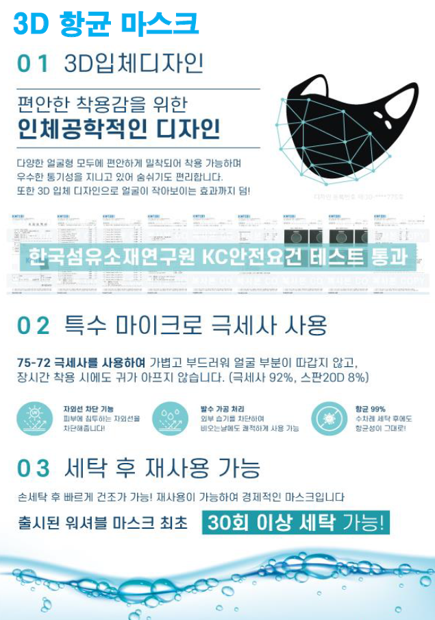 ※ 한국섬유소재연구원 시험결과, 30회 세탁 시 향균력 99.9% 유지