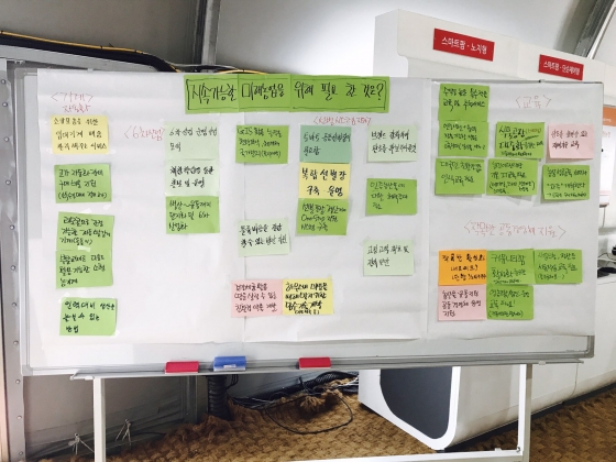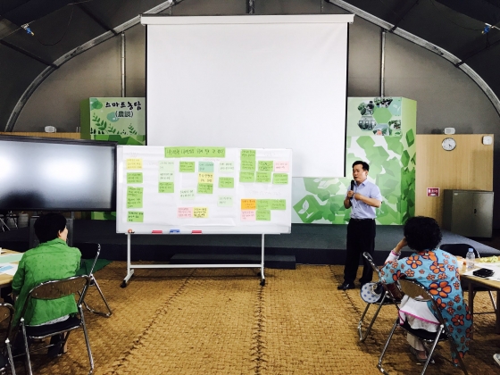 지속 가능한 미래농업에 필요한것에 대해 조별 워크숍 형식으로 개인의 생각을 공유하고